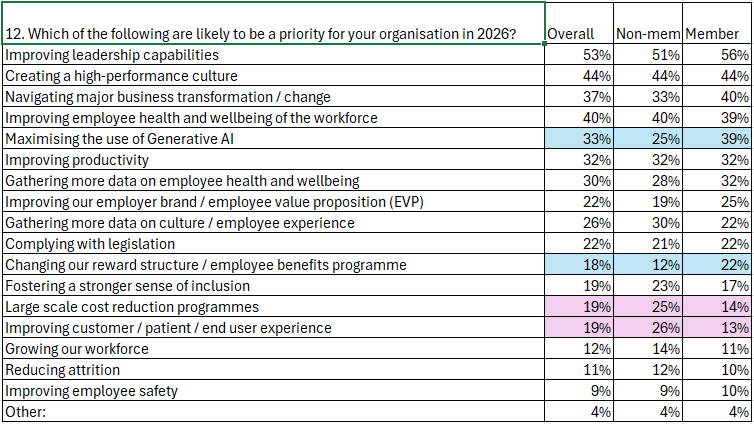Members are leaning into AI and strategy evolution, while non-members remain more focused on cost and customer pressures. When asked about priorities for 2026, clear differences emerged: